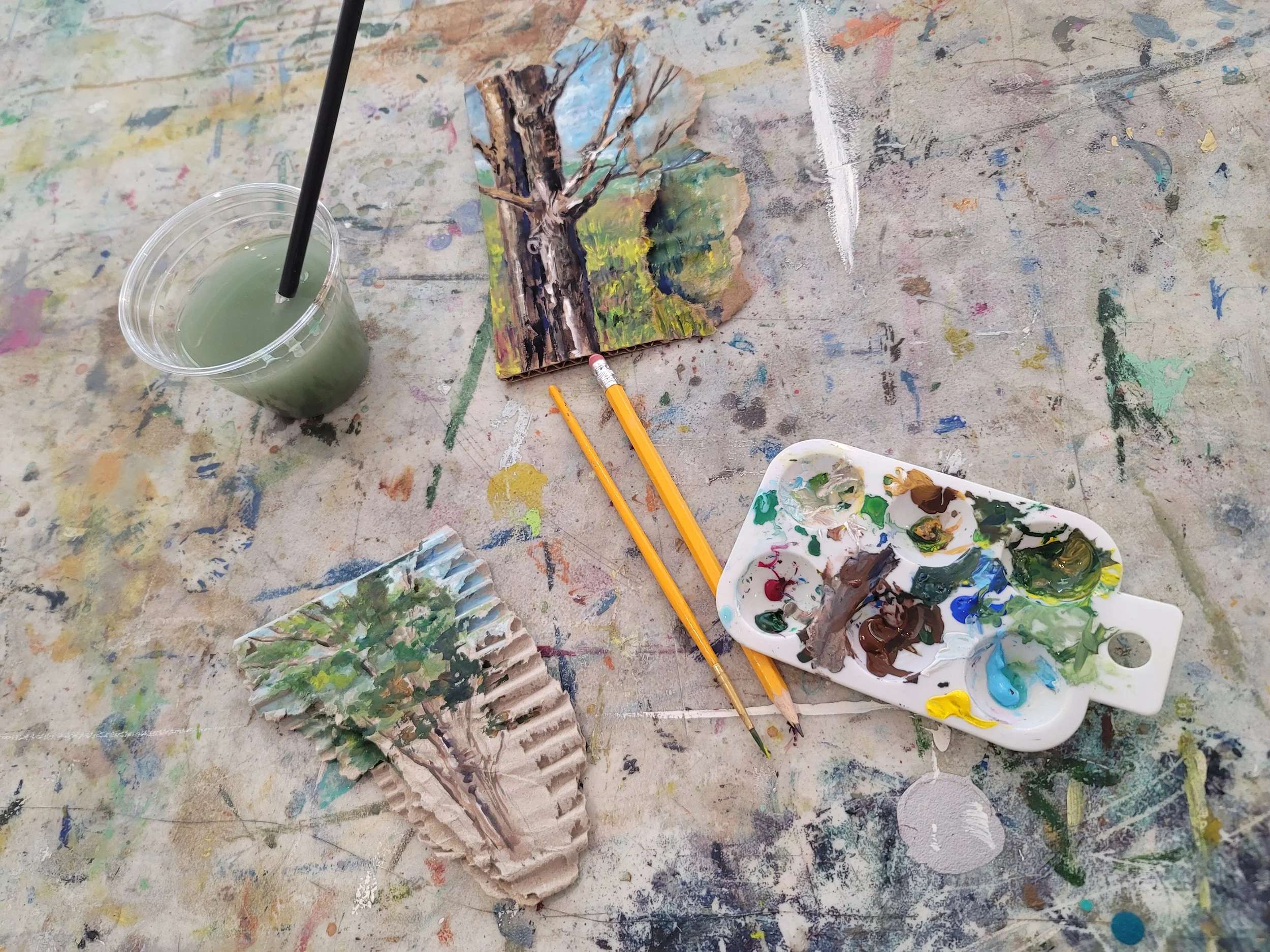 Water-based media, fiber arts, writing, collage, and more are welcome! Please note that oil paints and spray materials are not permitted in the building.